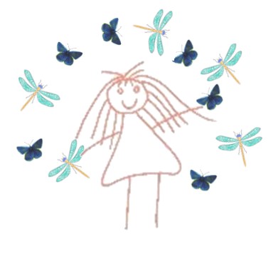 Chenilledesign, Papillondesign og Libellule-Tekstil samlet omkring pigelogoet, som er tegnet af mit barnebarn.